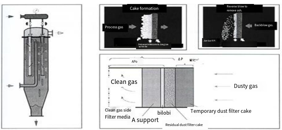 High temperature membrane filters are equipped with Venturi tubes positioned on the upper part of each filter element. The Venturi tubes work like a pump, sucking in a large amount of purified gas to clean the filter cartridge. Part of the kinetic energy of the reverse injection is converted into pressure energy, which creates an instantaneous reverse push of the filter gas in the cavity of the filter element, and then overcomes the pressure drop in the direction of filtration and the adhesion of the dust filter cake degree to remove the dust filter cake on the surface of the filter element, to achieve the purpose of online cleaning.